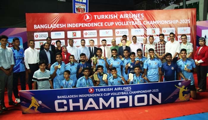 ঢাকা, ওপেন প্রেস ডেস্ক : মহান স্বাধীনতা ও জাতীয় দিবস উপলক্ষে বাংলাদেশ ভলিবল ফেডারেশনের ব্যবস্থাপনায় এবং টার্কিশ এয়ারলাইন্সের পৃষ্ঠপোষকতায় আয়োজিত স্বাধীনতা কাপ ভলিবল প্রতিযোগিতায় চ্যাম্পিয়ন হয়েছে বাংলাদেশ বিমান বাহিনী।
