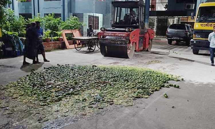 সাতক্ষীরা, (২৩ এপ্রিল, ২০২৫), ওপেন প্রেস ডেস্ক/বাসস : জেলা সদরে ট্রাকভর্তি প্রায় চার মেট্রিকটন অপরিপক্ব আম জব্দের পরে ভ্রাম্যমাণ আদালতের আদেশে ক্ষতিকর রাসায়নিক মেশানো ১০ ক্যারেট অপরিপক্ব গোবিন্দভোগ আম গাড়ির চাকায় ফেলে বিনষ্ট করা হয়েছে। এছাড়া রাসায়নিক মুক্ত ১৬০ ক্যারেট আম নিলামে ৪৫ হাজার টাকায় বিক্রি করা হয়েছে।