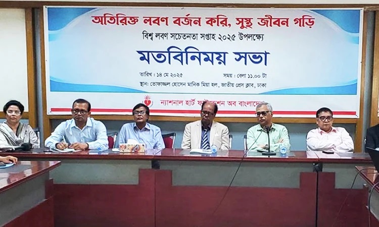 আজ ১৪ মে, ২০২৫ বুধবার জাতীয় প্রেসক্লাবের তোফাজ্জল হোসেন মানিক মিয়া হলে ন্যাশনাল হার্ট ফাউন্ডেশন অব বাংলাদেশের উদ্যোগে ‘বিশ্ব লবণ সচেতনতা সপ্তাহ ২০২৫’ উপলক্ষ্যে আয়োজিত এক মতবিনিময় সভায় এসব তথ্য তুলে ধরা হয়। খবর বাসস।