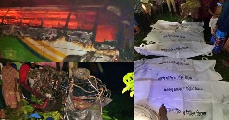 রাত ৯টার দিকে ময়মনসিংহের ফুলপুর পৌর শহরের কাজিয়াকান্দা এলাকায় হালুয়াঘাট থেকে ঢাকাগামী শ্যামলী বাংলা পরিবহনের একটি বাস বিপরীত দিক থেকে আসা মাহিন্দ্রা থ্রি-হুইলারের মুখোমুখি সংঘর্ষে ৬ জন নিহত হন। আহত হন অন্তত ১৫ জন। হতাহতরা সবাই মাহিন্দ্রার যাত্রী বলে জানিয়েছে পুলিশ।