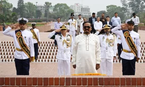 পুষ্পস্তবক অর্পণের পর স্পিকার ও ডেপুটি স্পিকার মহান স্বাধীনতা যুদ্ধে আত্মদানকারী বীর শহীদদের স্মৃতির প্রতি গভীর শ্রদ্ধা জানিয়ে কিছুক্ষণ নীরবে দাঁড়িয়ে থাকেন।