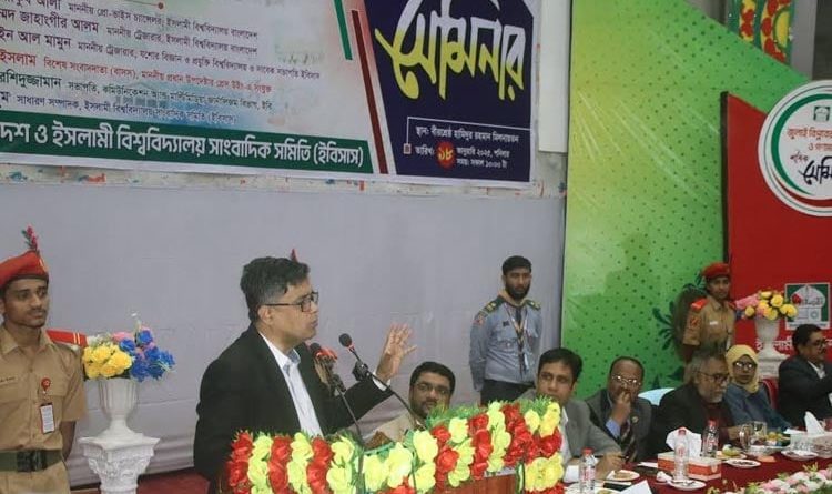 আজ ১৮ জানুয়ারি, ২০২৫ শনিবার ইসলামী বিশ্ববিদ্যালয়ের (ইবি) বীরশ্রেষ্ঠ হামিদুর রহমান মিলনায়তনে প্রশাসন ও বিশ্ববিদ্যালয় সাংবাদিক সমিতি (ইবিসাস) যৌথভাবে আয়োজিত ‘জুলাই বিপ্লবের আকাঙ্ক্ষা ও গণমাধ্যম’ শীর্ষক সেমিনারে প্রধান আলোচকের বক্তব্যে এ কথা বলেন তিনি। খবর বাসস।